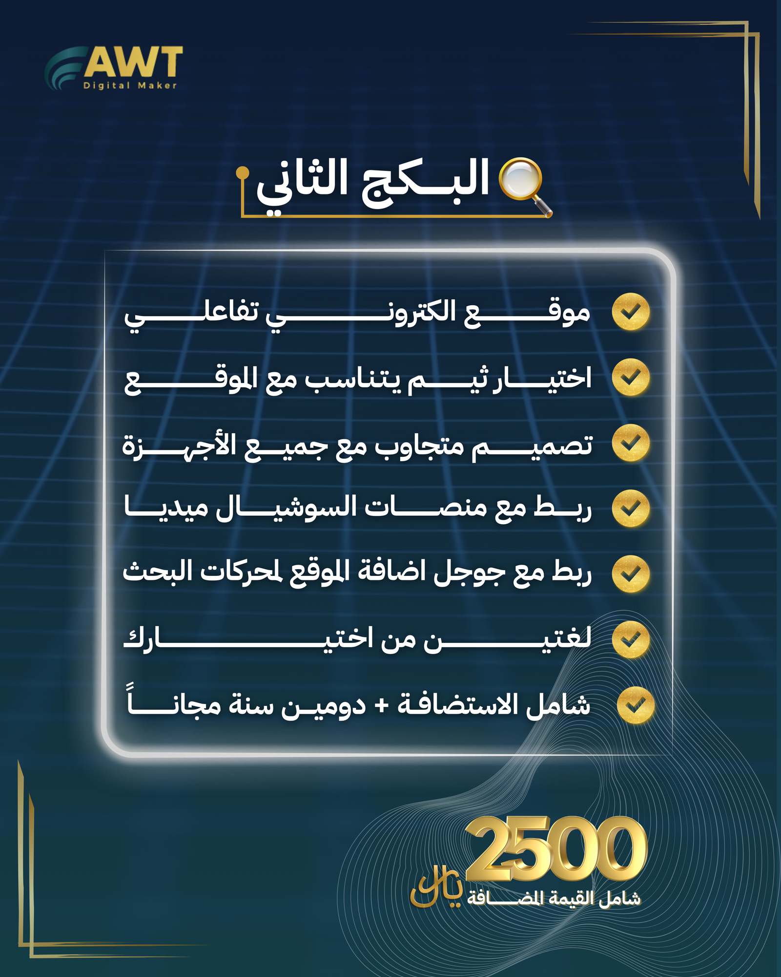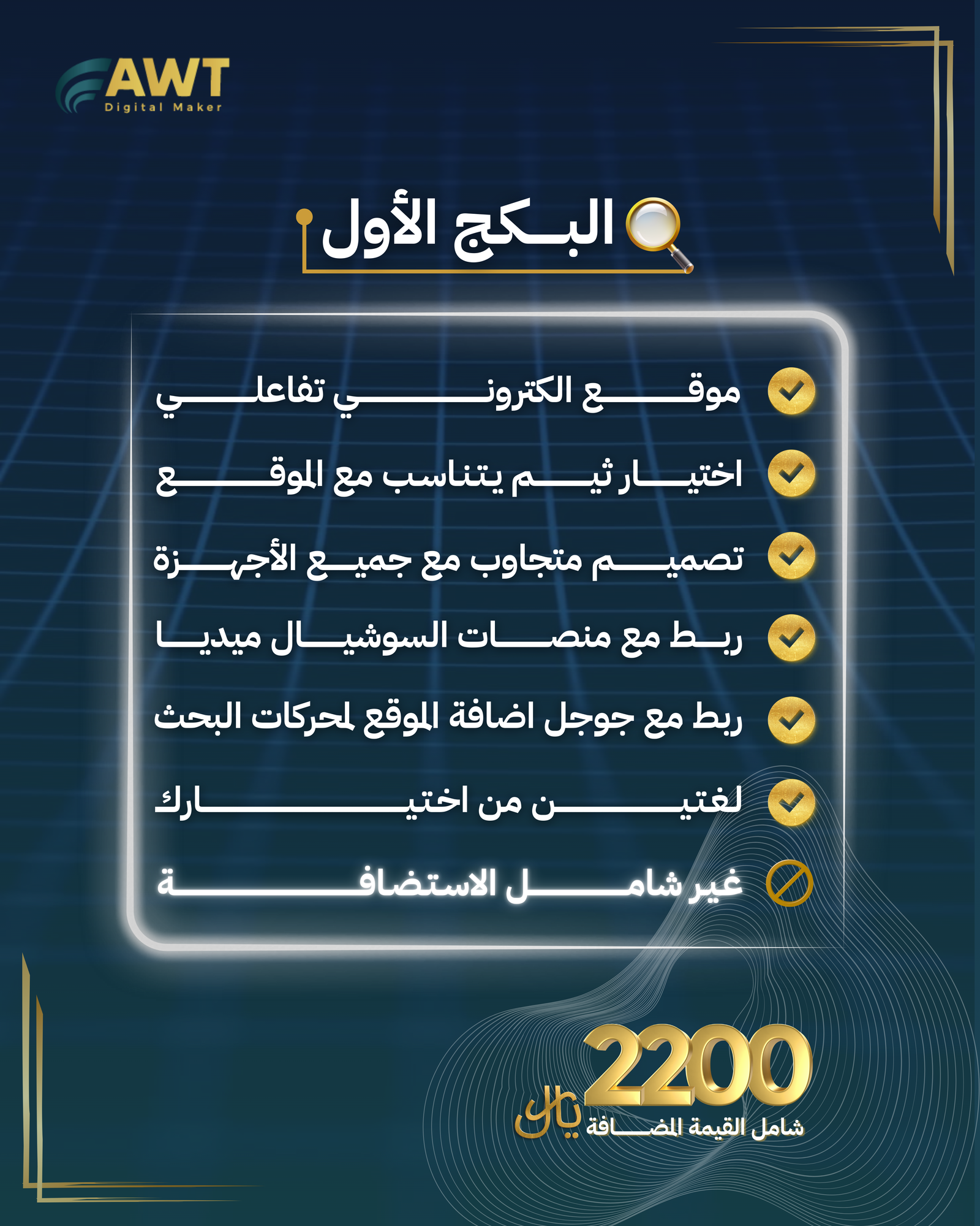 نحن في شركة الموجة المتقدمة  نقدم حلولًا رقمية احترافية تساعد الأنشطة التجارية على بناء حضور قوي ومؤثر على الإنترنت. نصمم مواقع عصرية سريعة ومتجاوبة مع جميع الأجهزة، مع الاهتمام بتجربة المستخدم وتحسين محركات البحث لضمان أفضل أداء ونتائج ملموسة. هدفنا أن نحول فكرتك إلى موقع يعكس هوية علامتك التجارية ويدعم نمو أعمالك باحترافية وثقة.
